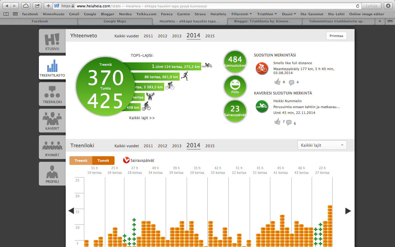 Viime vuoden tunnit ja määrät näyttävät ihan hyviltä.Hyvin huomaa missä kohtaa on koutsin ohjelmaa alettu seuraamaan.