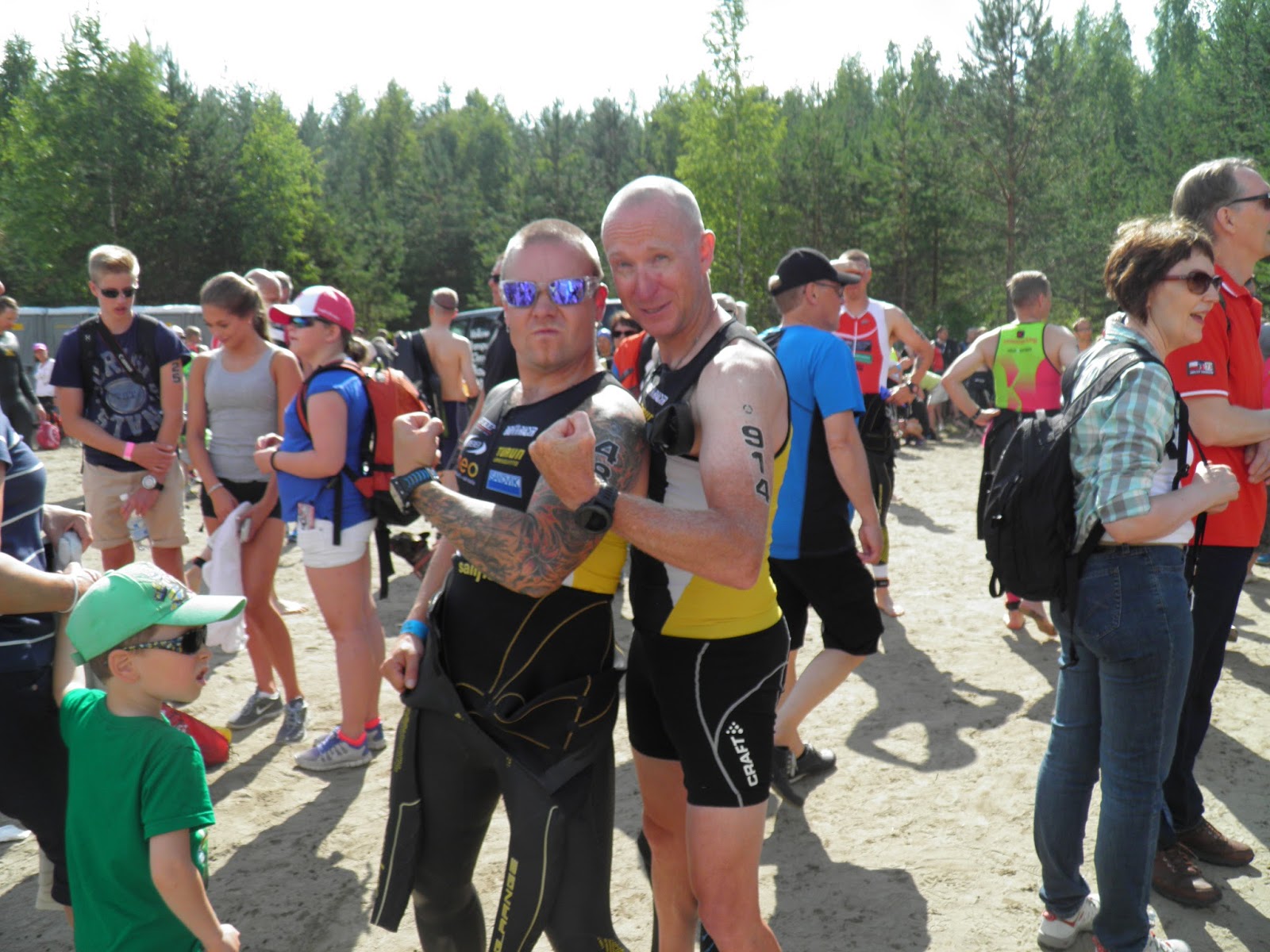 Tässä kohtaa aloin vetämään märkkäriä päälle, koska oma startti on 11:18. Alkoi hieman jännittämään, sanoinkin Sarille että on ihan eri fiilis kuin Vierumäellä. Todella hyvä! Odottavan jännittävän vahva. Oli sellainen olo että tänään tärhtää! Vaseliinit niskaan ja pukukiinni sekä pusut ja halit. Oli aika siirtyä veden ääreen.