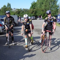 jos vauhti pysyy samana, niin ohi mennään jossain kohtaa. Aikalailla yksin sai ajella aina välillä 45- 60 km. Jostain ilmesty 4 miehen ryhmä. En muista ottikiko ne minut kiinni vai otinko minä. Mutta kuitenkin. Tästä ajo oli yhtä kissa hiiri leikkiä aina viimeisen kääntöpaikan nousuun saakka, jossa koko ajo puuroutui. Käännön jälkeen ampaisin koko jonon ohi niin kova kuin pääsin. Ja eikä kauaakaan, kun teboilin piha ja tuleva vaihto jo häämötti. Hieman ennen viimeistä oikeaa mutkaa kengistä ulos ja valmistautuminen juoksemaan vaihtoon.