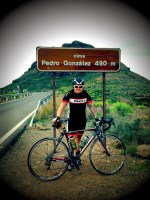 Soria. Maspalomaksesta Rantatietä Puerto Ricoon päin ja heman Arquinequin:in jälkeen lähtee rutas ciclistas Sorian kylään ja siitä aina sinne ”ei tämä tie voi tästä enää kaueasti nousta” risteykseen asti. 66 kilsaa, max nousu jyrkkyys 14,6 % max korkeus 650 m. Polkastiin ylämäkeen noin 20 km ja päästiin Soriaan asti ja 650 m kyltille. siitä alkoi niin pieni ja huono kuntoinen tie joka oli miltei pysty suoraa. Mietittiin hetki, reidet polttaa, ei oikein jaksaiskaan enää.. huipulla käynti painaa vielä jaloissa, onneksi alkoi tihkuttaa vettää.. lähdettiin laskemaan alas. Taas vajaata 70 kymppiä serpenttiinä kaahaten. Alhaalla poljettiin lievään alamäkeen sellasta viittäkymppiä. Se oli racea se. Vetäjä vaihtui välillä, saatiin yksi
