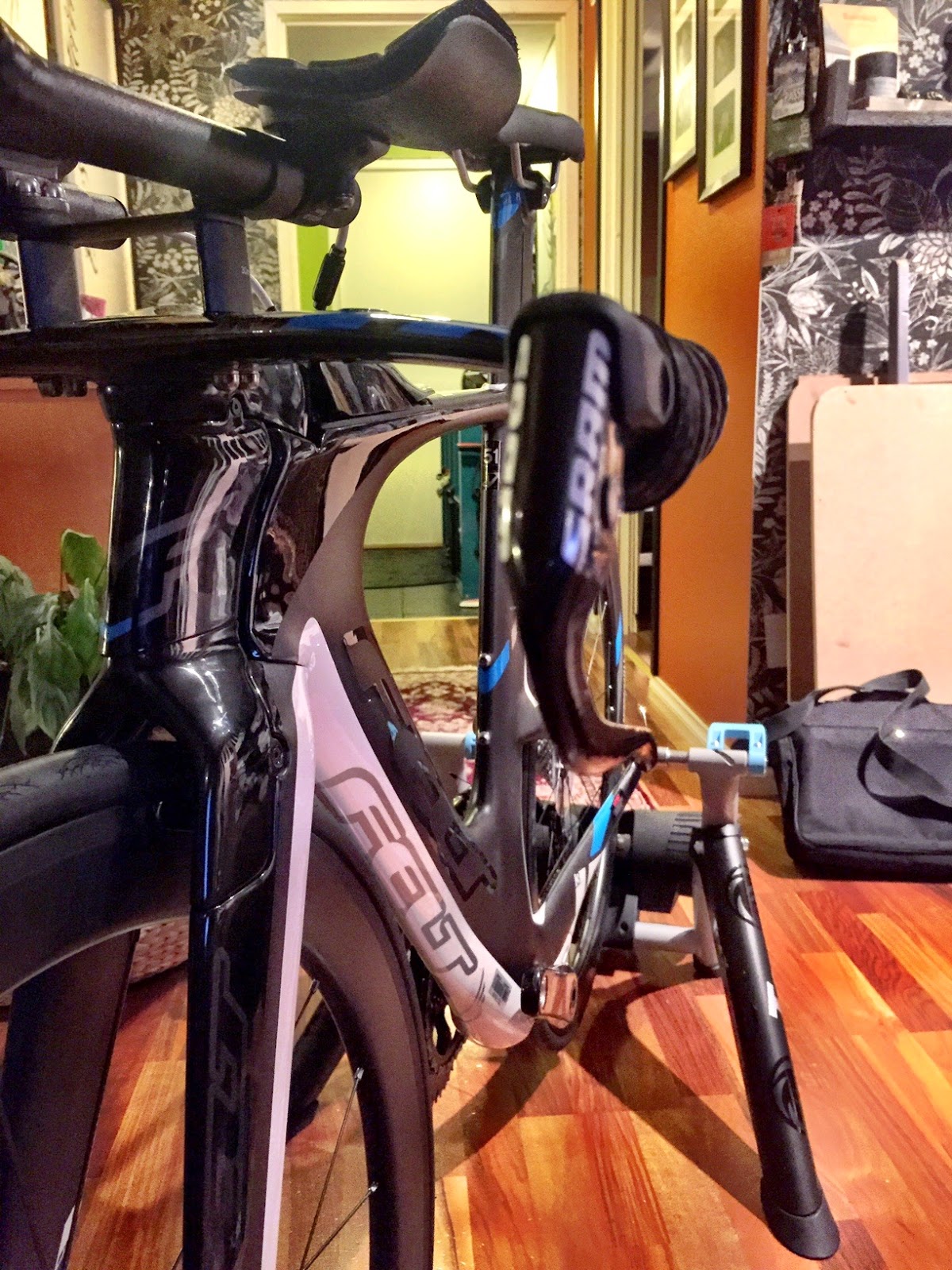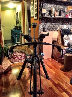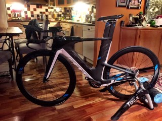 Harmillisesti tilaamani Quarq:n wattikammet tuliavat väärällä keskiöllä joten tähän lähtöön niitä ei saatu asennettua. Sitten kun ne on saatu paikoilleen päästään ruuvaamaan ajoasentoa.