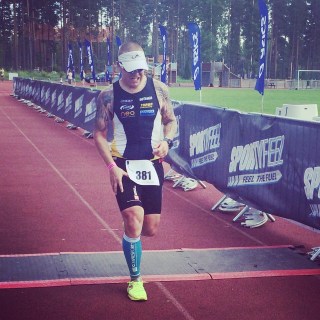 toiminu? Pah, ei ne mitään toiminu. Alle kilometri ja kävelyksi meni, kun tunto hävisi. Meinasin kompastua omiin jalkoihini.. Jumalauta. Kramppia se ei ollut. Kiristi vaan aivan saatanasti. Tästä oli siis tulossa varsinainen via dolorosa, eli kärsimystentie. Tästä tulikin mieleen että terkkuja Läntisen Tommille. Mitä vanha naapuri? jatketaan. Laitoin täksi kisaksi jalkaan compressportin tri housut. Olen viimeaikoina käyttäny pelkästään näitä treeneissä. Eli epäilijöille tiedoksi että testattu on ja todettu toimiviksi. Housut tuntuneet todella hyviltä ja siltä ettei jalassa ole edes housuja. Kävelyn aikana raotin housun lahjetta hieman ja paine hieman helpotti. Ne perkeleet oli siis syy miksi reidessä ei ollut voimaa ja miksi ne oli aivan tunnottomat. Tätä ”juoksu” kävely yhdistelmä paskaa jatkui siis koko 10 kilometriä. Urheilu kentällä oli pakko juosta vaikka kuinka kiristi,, koska se oli täynnä ihmisiä. Silloin ei heikkoja hetkiä näytetä. Reitillä moni kyseli että mikä on ongelmana. Kiitos huolenpidosta ja tsempeistä, niistä saa aina buustia vaikka olisi kuinka vaikeaa! Väänsin kuin väänsinkin itseni väkisin maaliin. Paskalla ajalla mutta maaliin kuitenkin.
